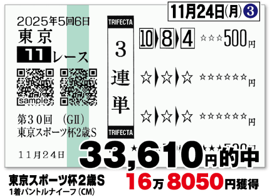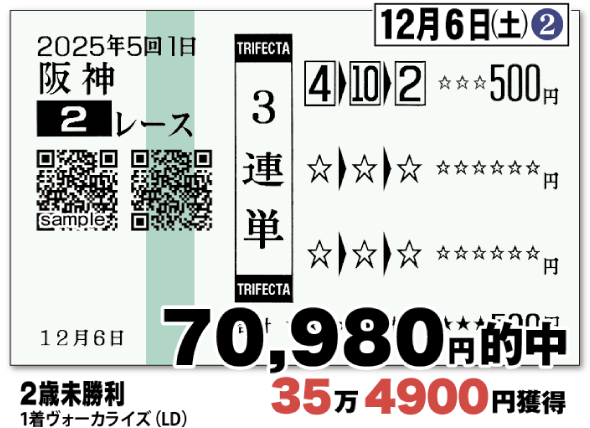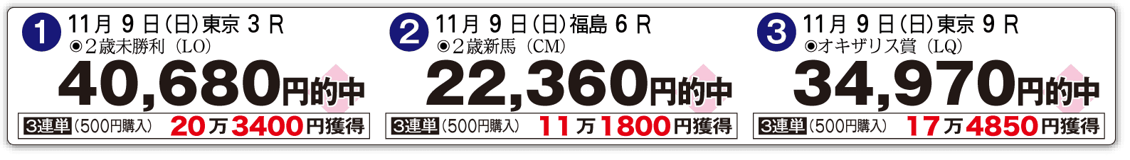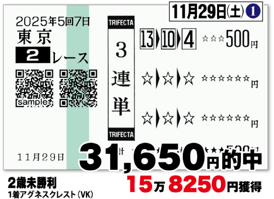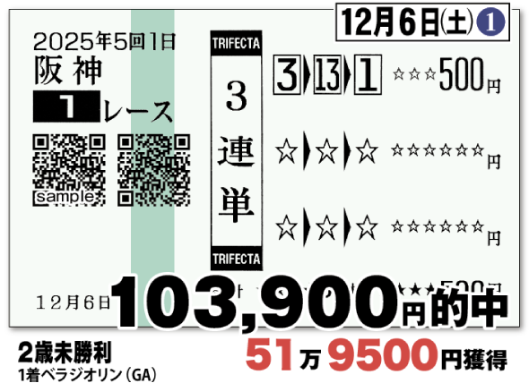 馬券にて下記実績同様の的中をお届け