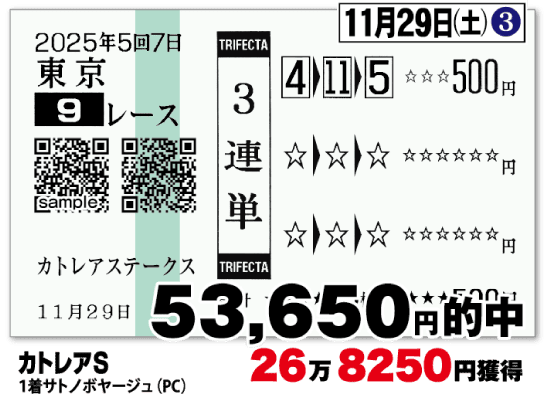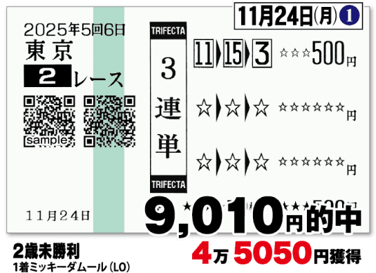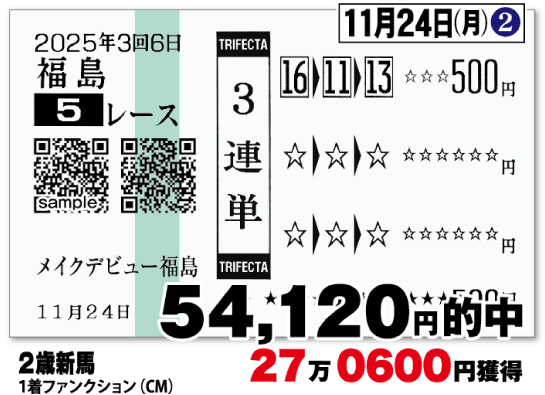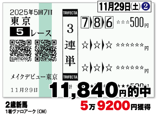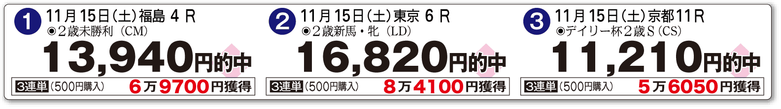 馬券にて下記実績同様の的中をお届け